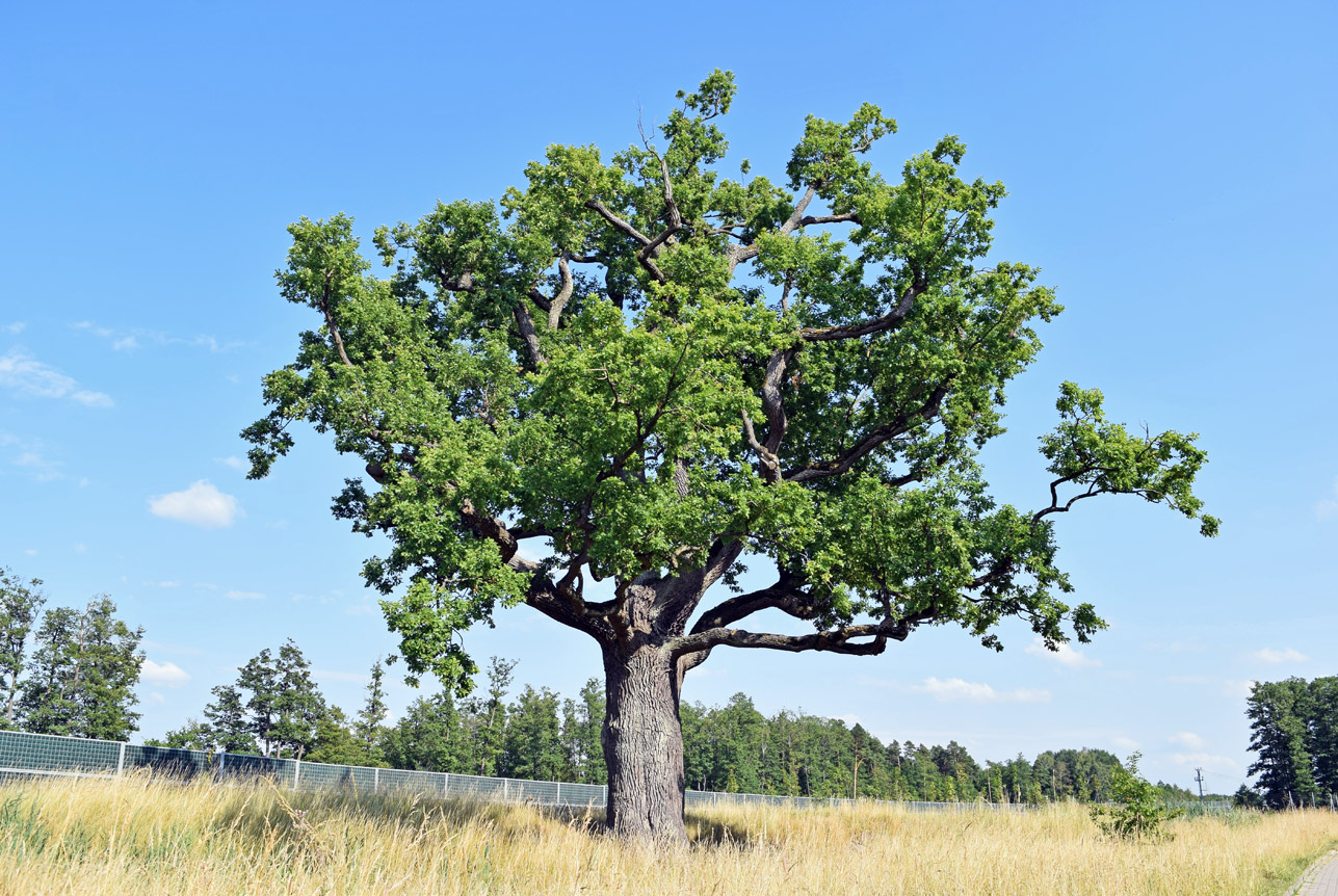 dąb szypułkowy, wiek 200 lat, wys. 25 m, obwód 530 m, pomnik przyrody.